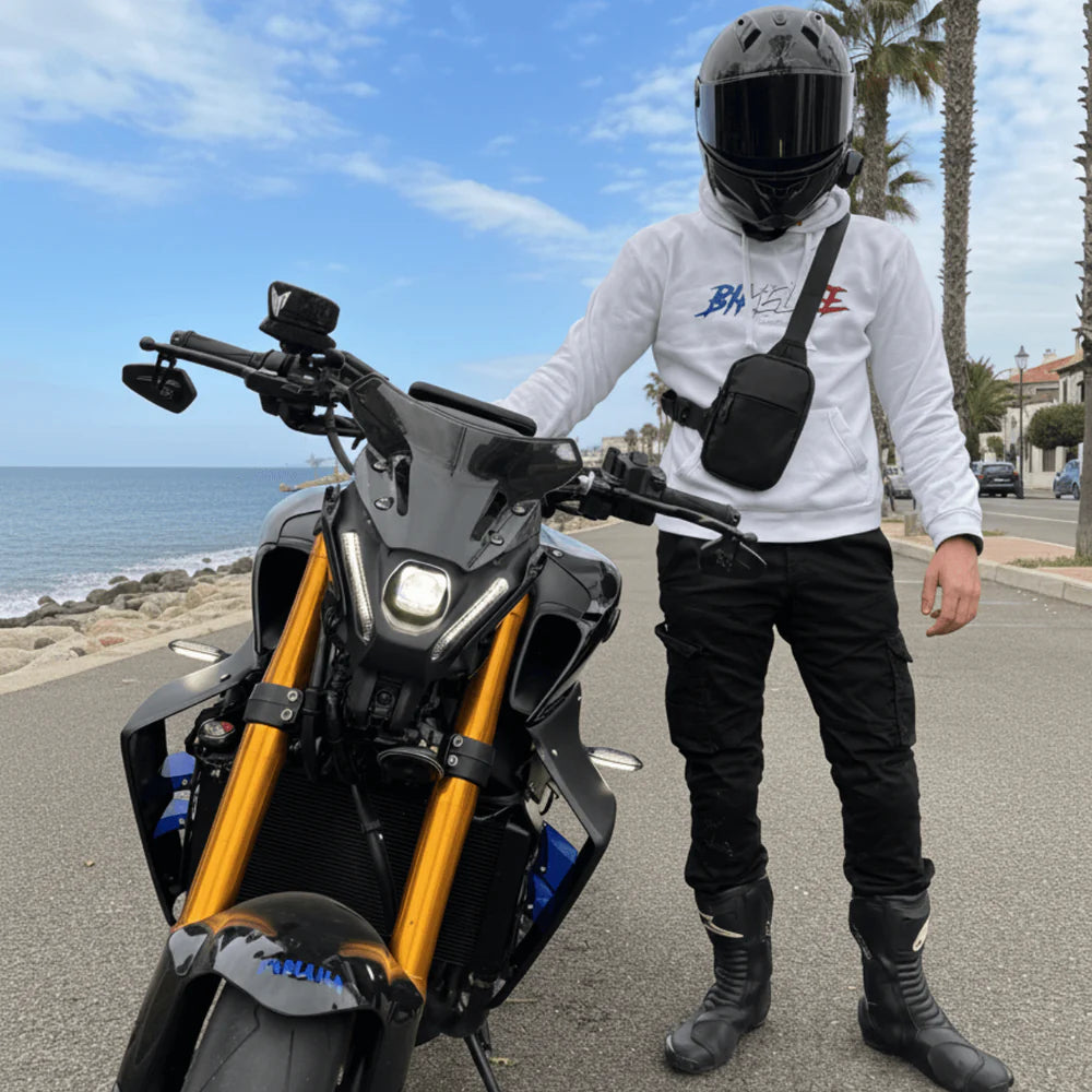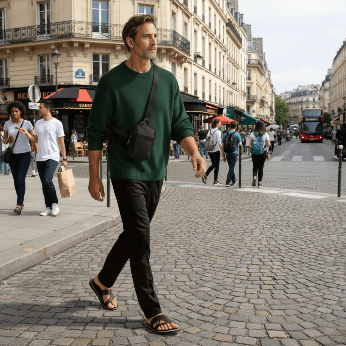 Compact, secure, and discreet, this sling bag adapts to every journey — even on the road.