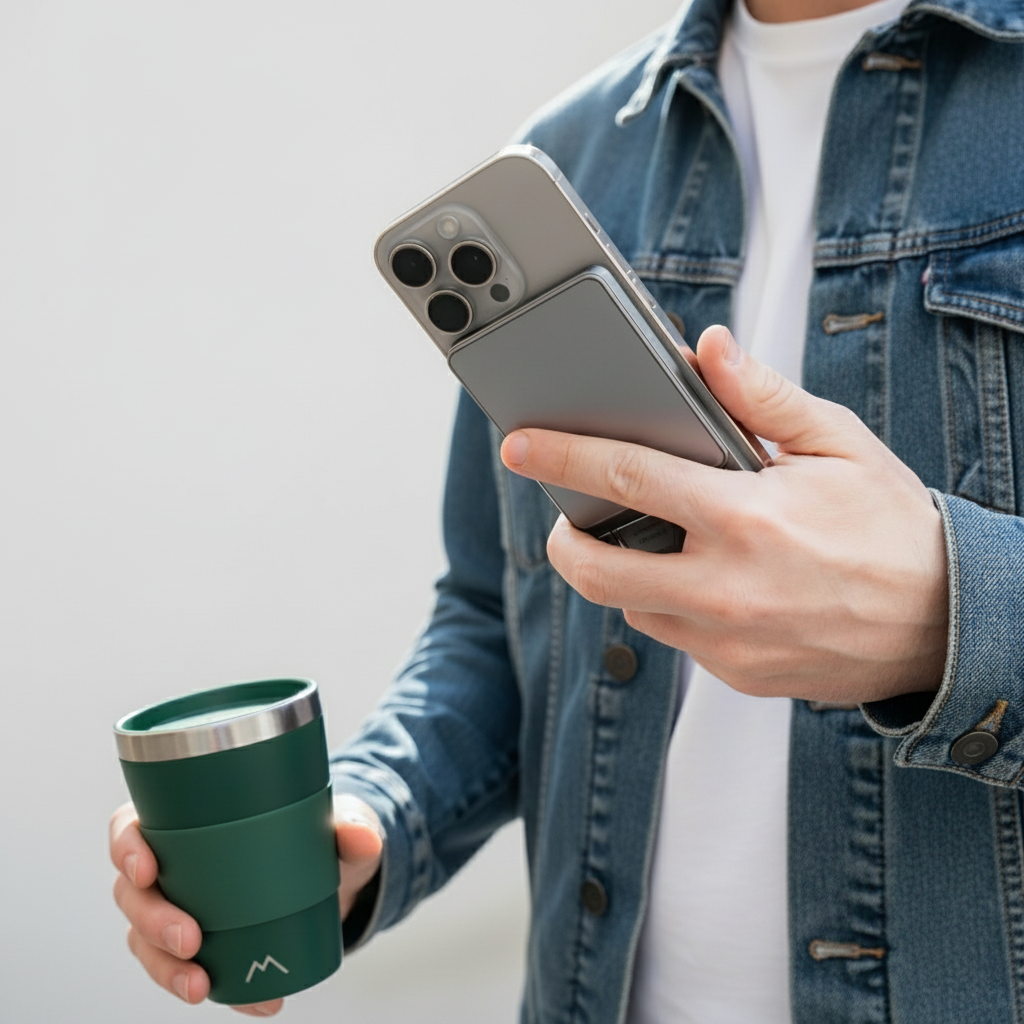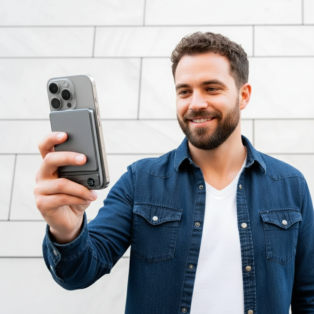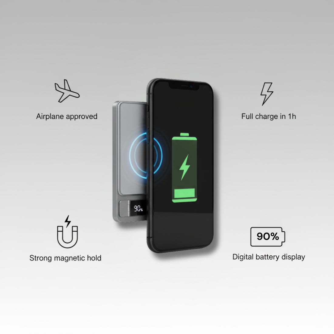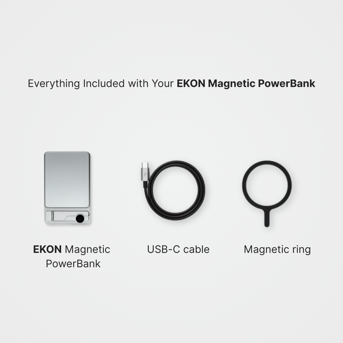 The EKON Magnetic Power Bank is compatible with all iPhones and QI-enabled Android devices, including Samsung, Google, and Huawei.
