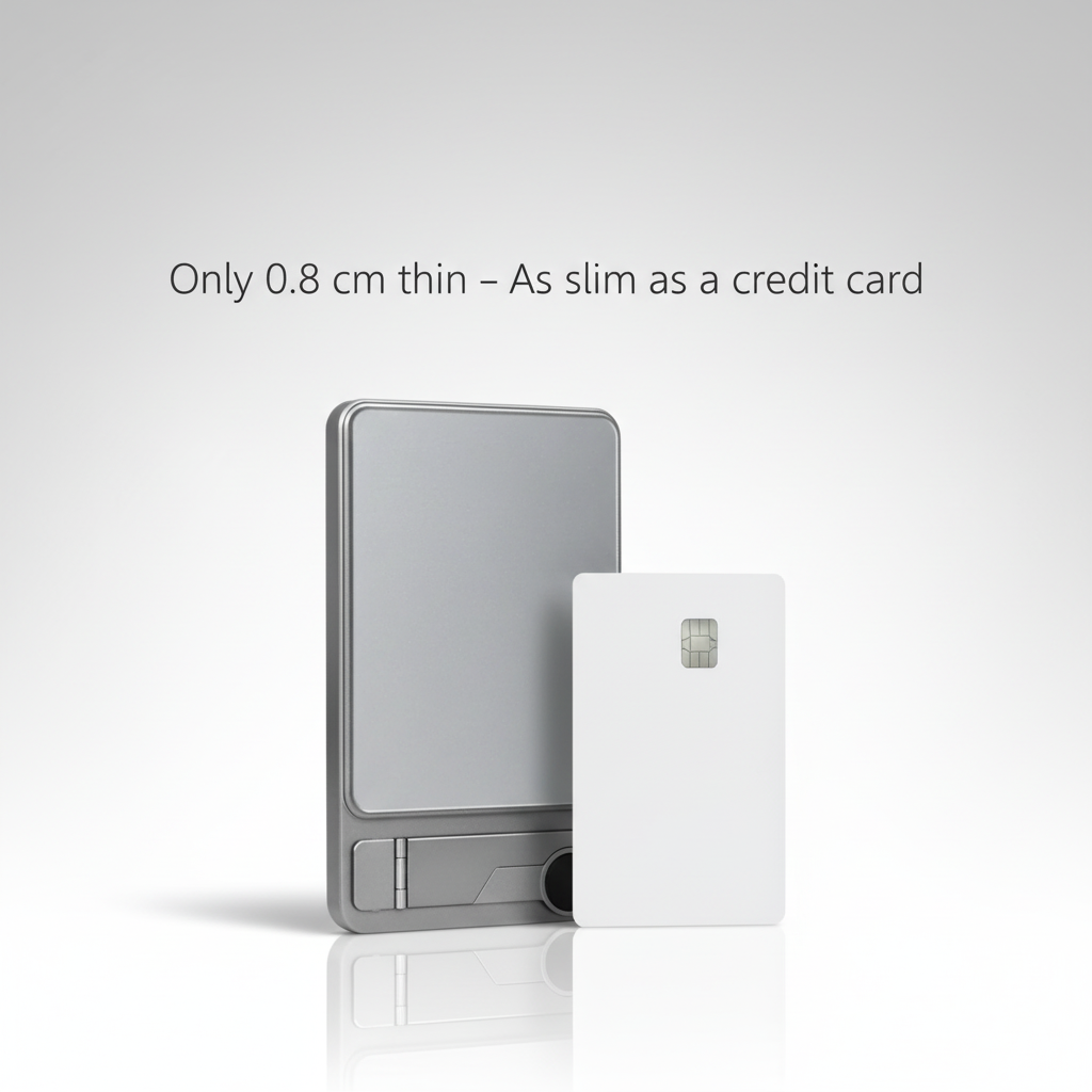 The 8 mm thin EKON Magnetic PowerBank fits in any pocket – and is immediately available when your battery runs low.